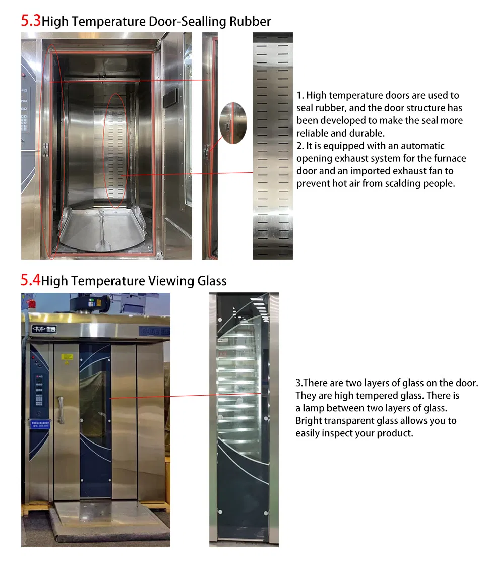 | JMX-64R | gas | 2 trolley, 64 trays | 2340*3160*2610mm | 380V / 5kW | 2850kg |